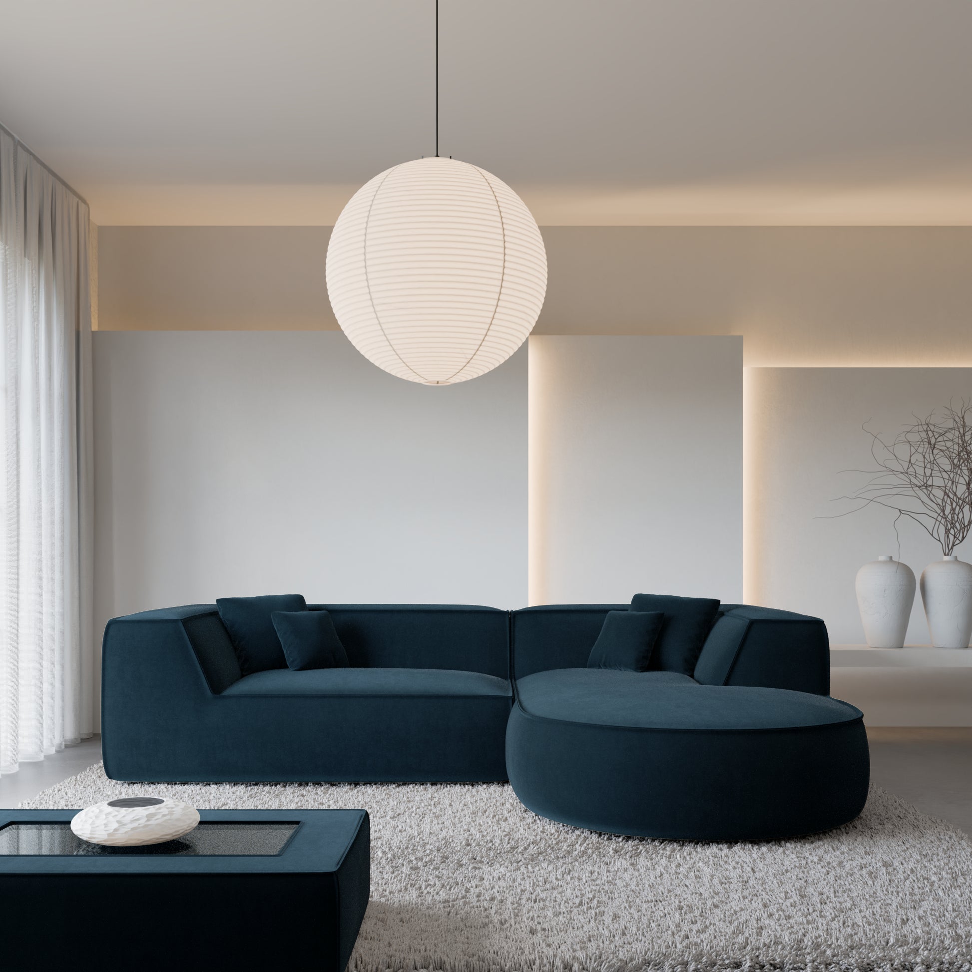 Left / Structural Fabric / Velvet Dark Blue
