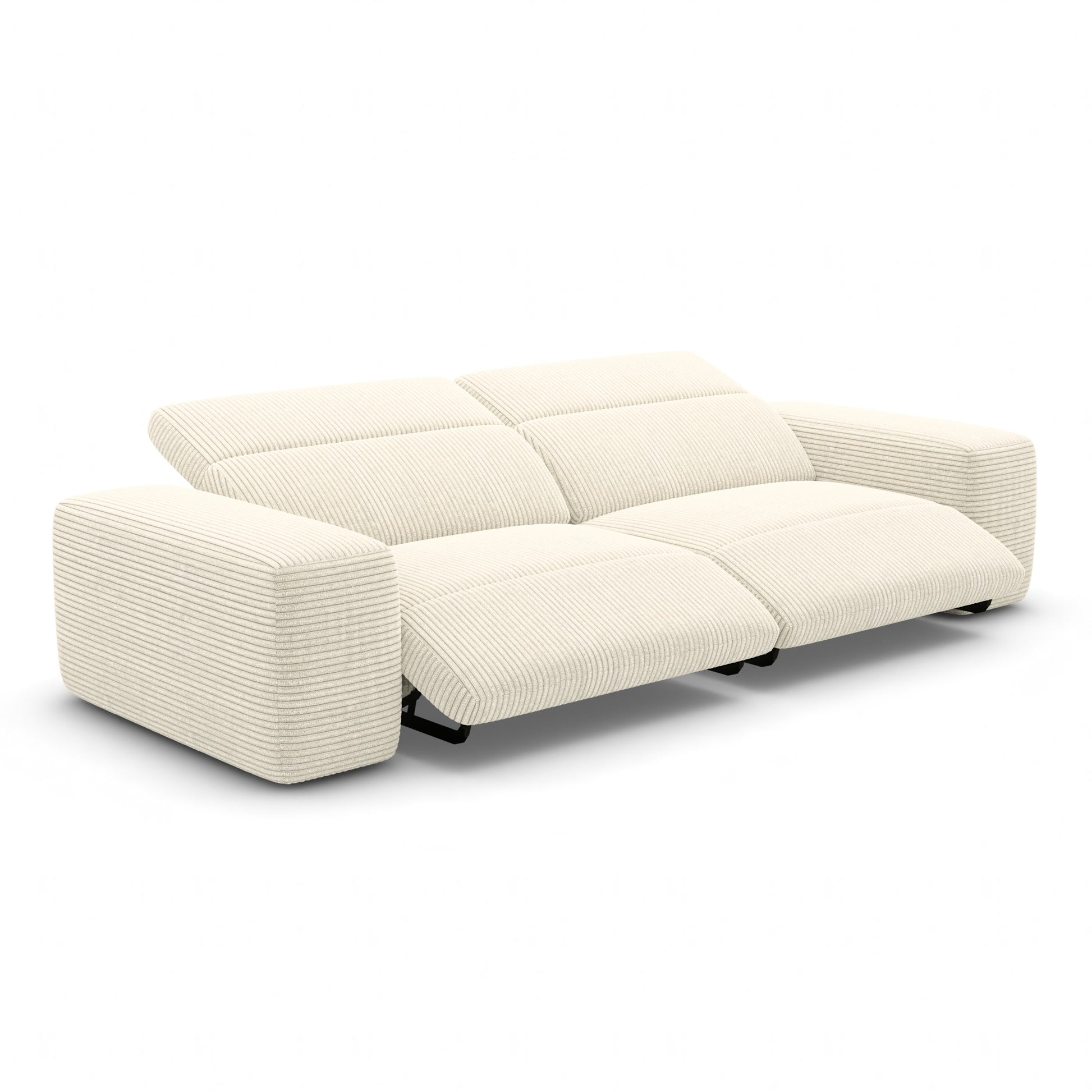 This sofa blends modern elegance with inviting softness, creating a timeless centerpiece for any interior. Its generous proportions, gentle contours, and refined silhouette bring a sense of harmony and sophistication to your home. It features an electrical relax function operated at the touch of a button, allowing you to recline effortlessly, while the adjustable headrests provide personalized support for optimal comfort.