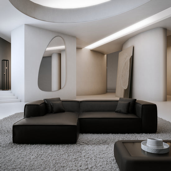Links / Cord-Samt / Leder Schwarz