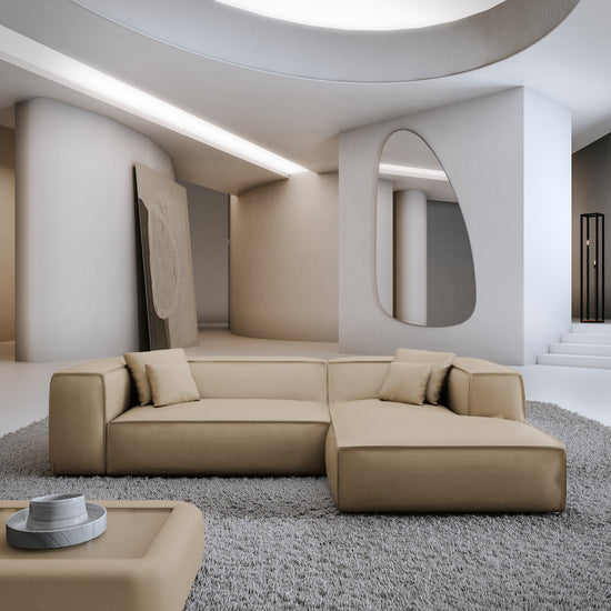 Links / Cord-Samt / Leder Beige