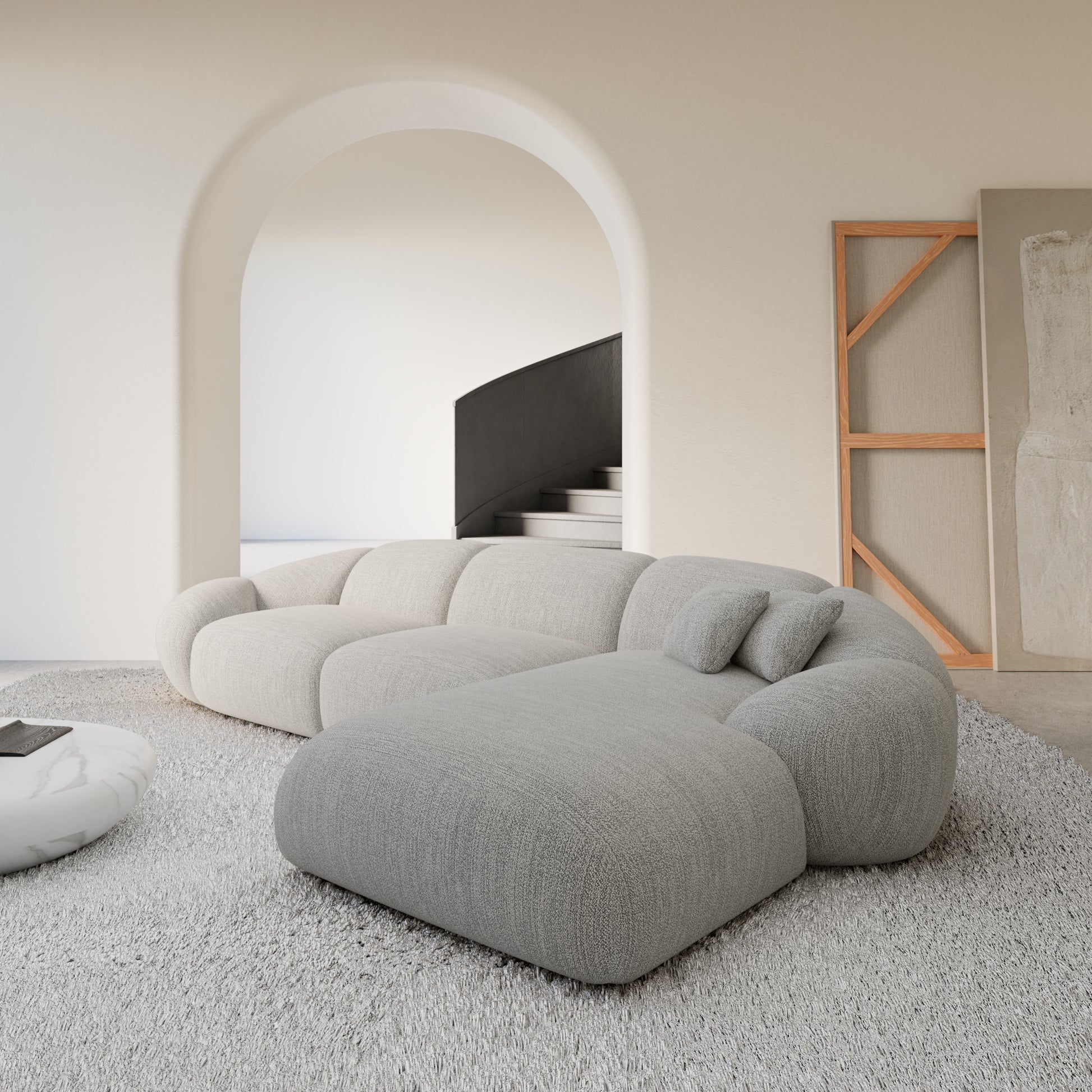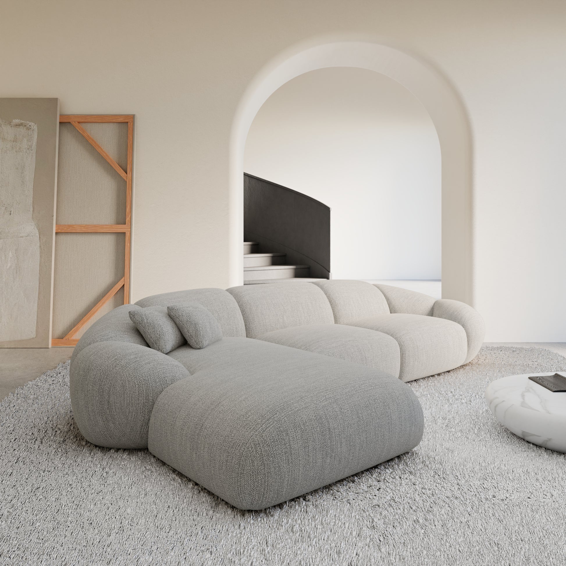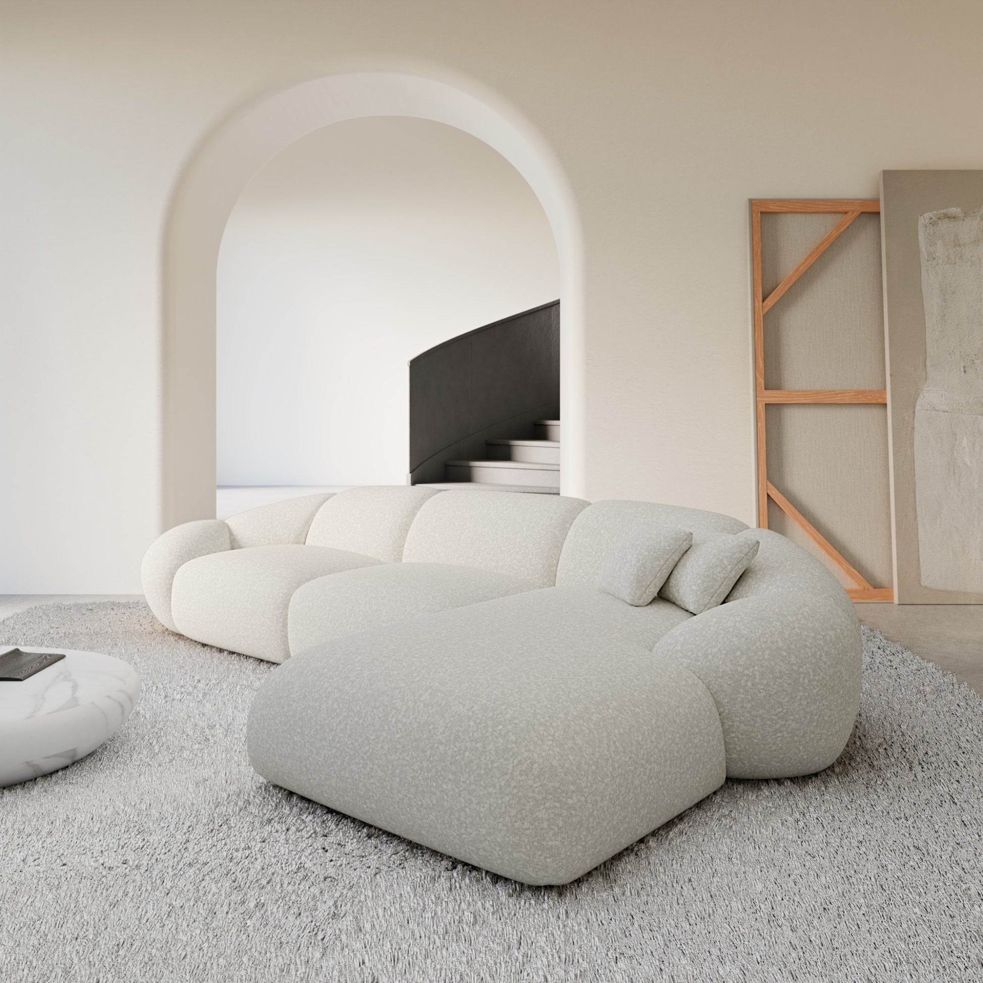 Izquierda / Bouclé / Estructura Gris Claro