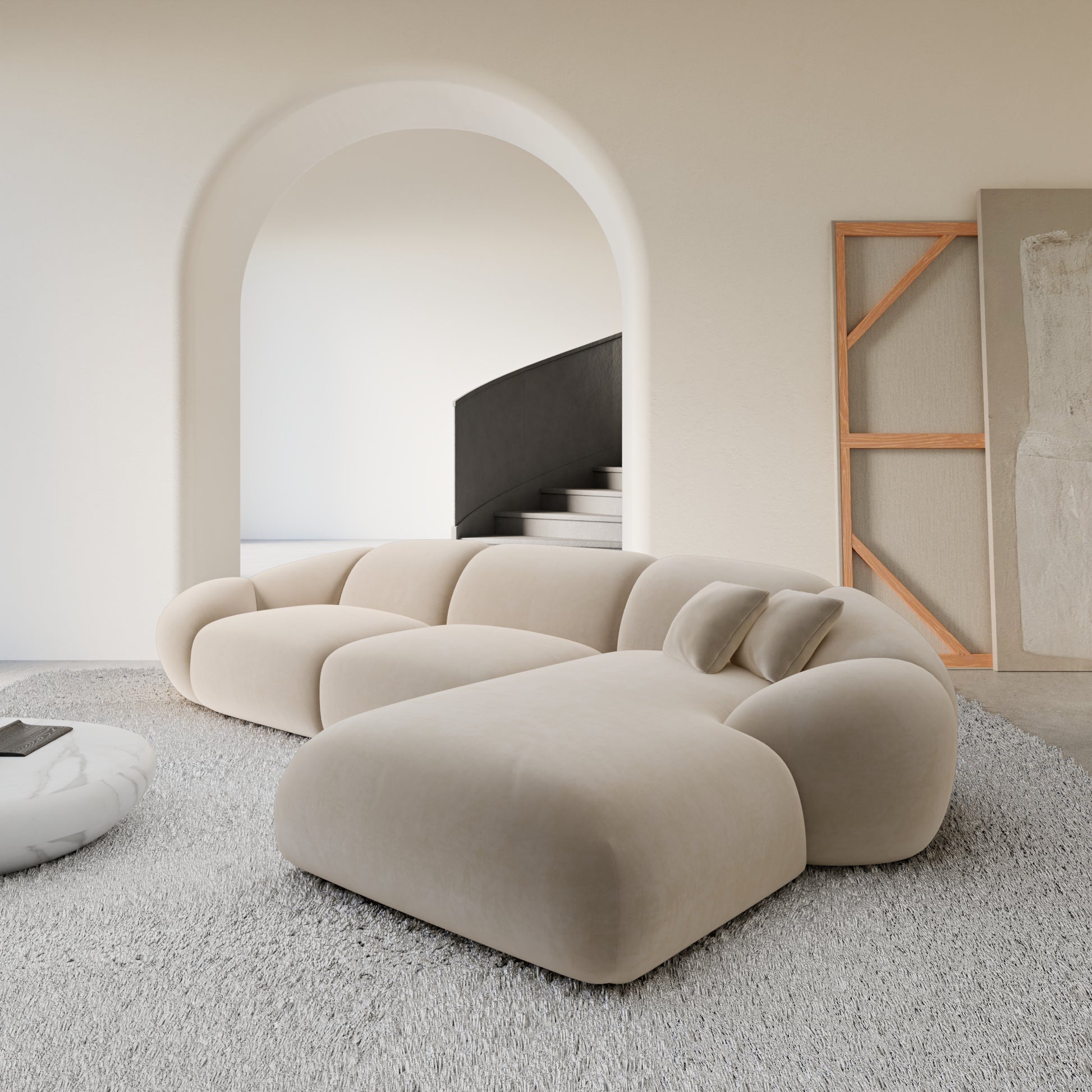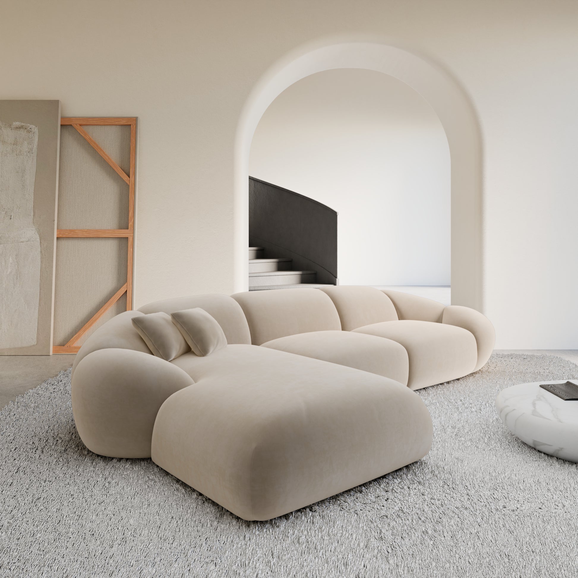 Izquierda / Bouclé / Terciopelo Beige