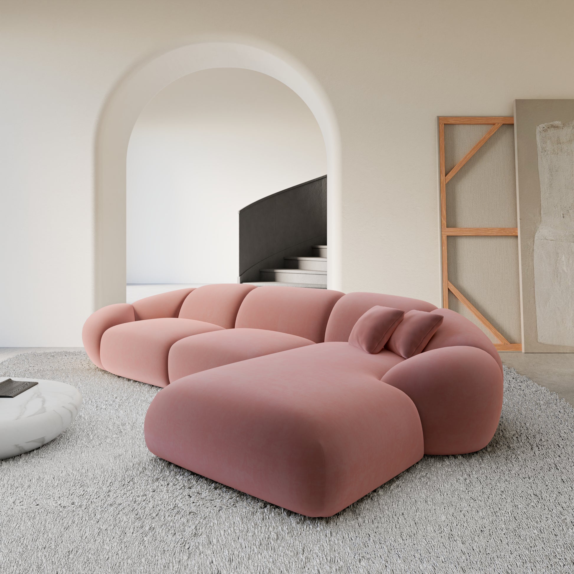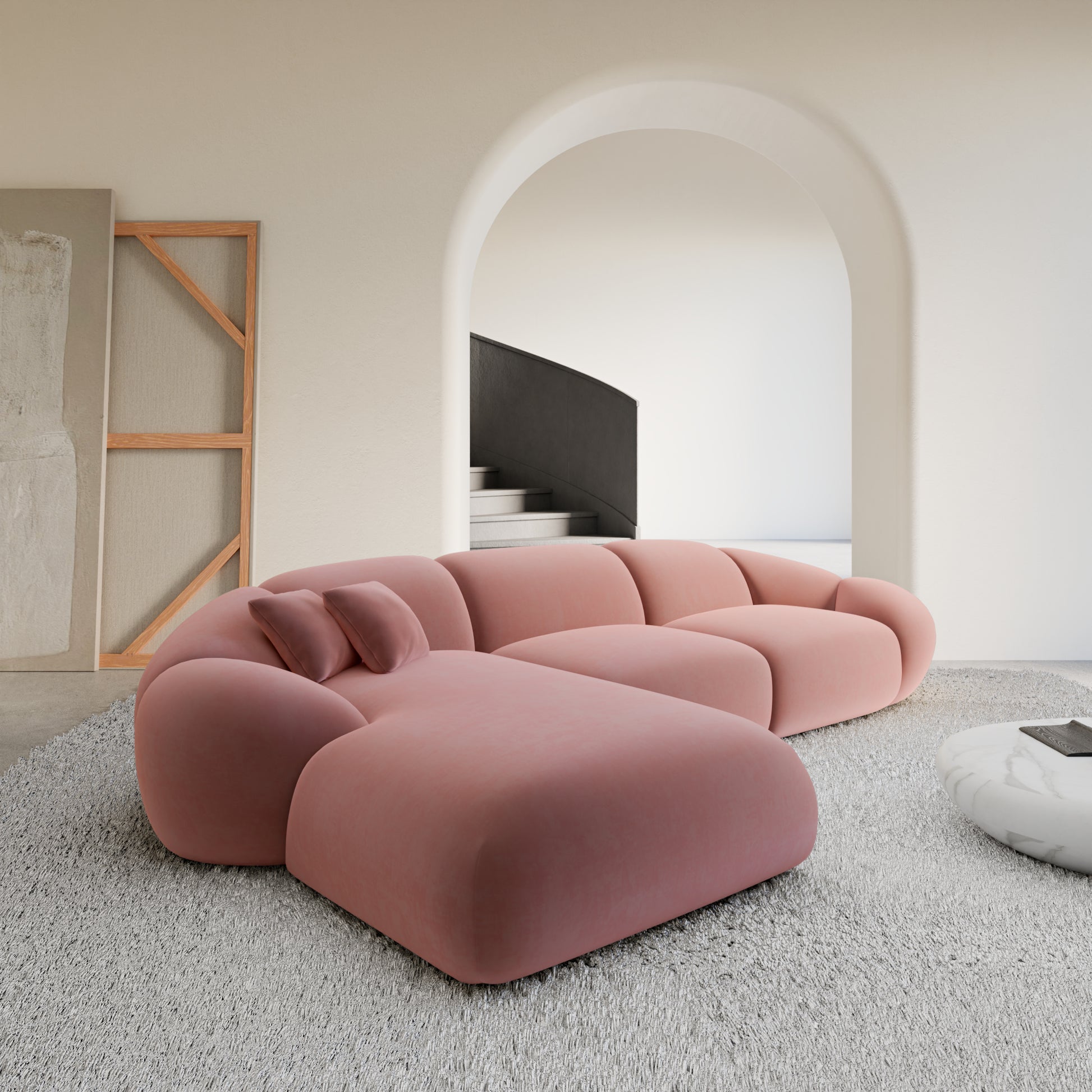 Izquierda / Tejido Estructural / Terciopelo Rosa Salmón