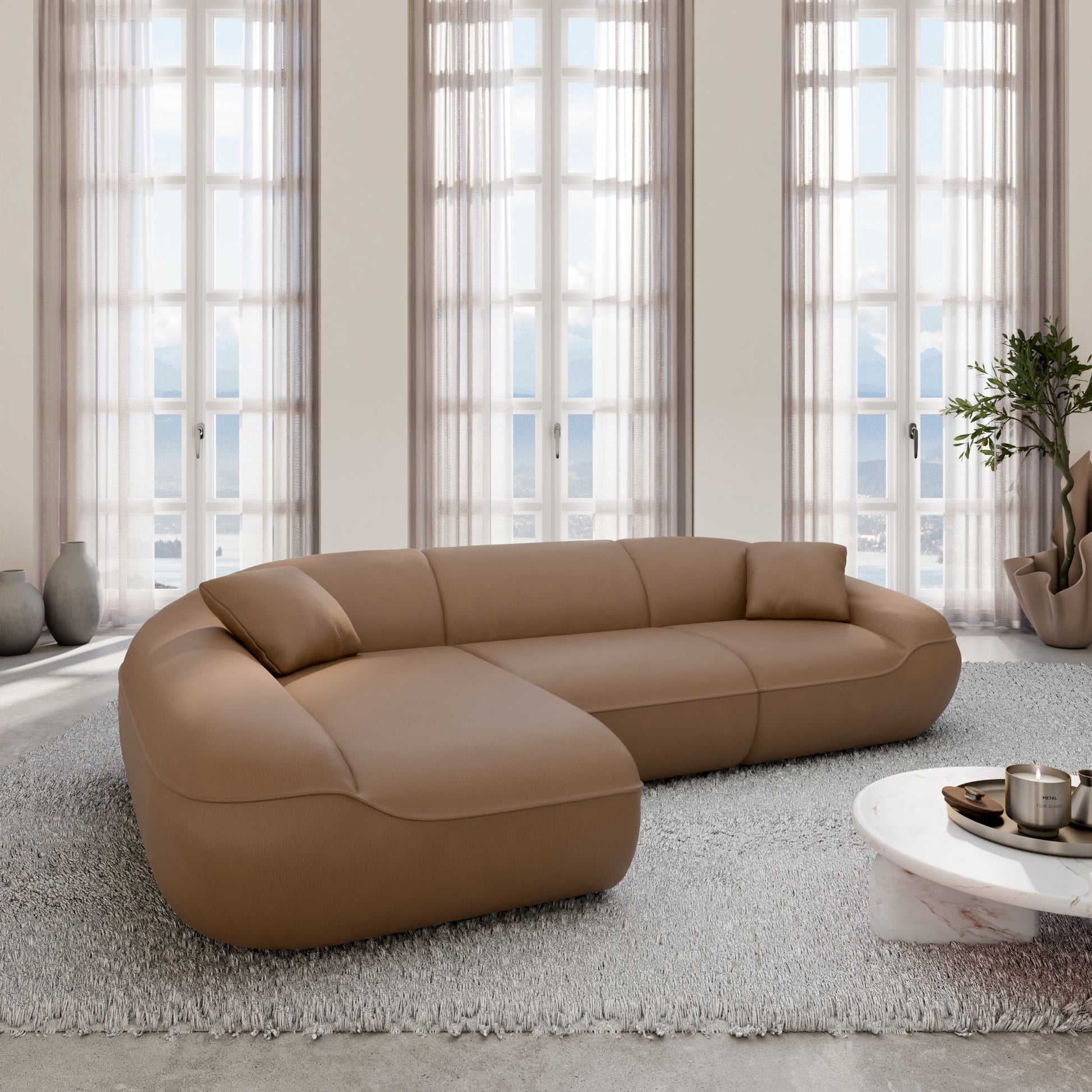 Izquierda / Cuero Auténtico / Bouclé Caramelo