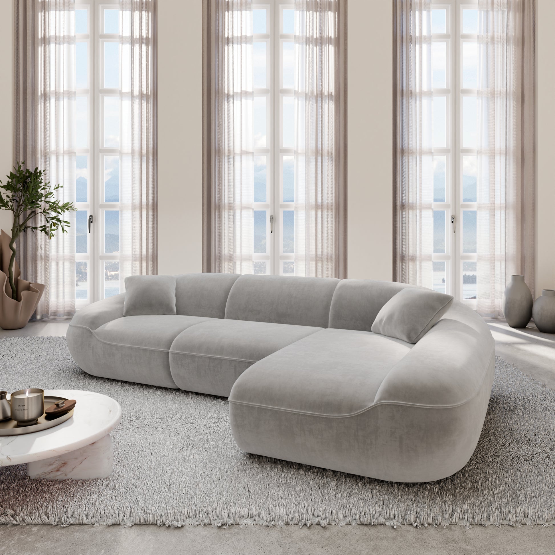 Derecha / Terciopelo / Terciopelo Gris Claro