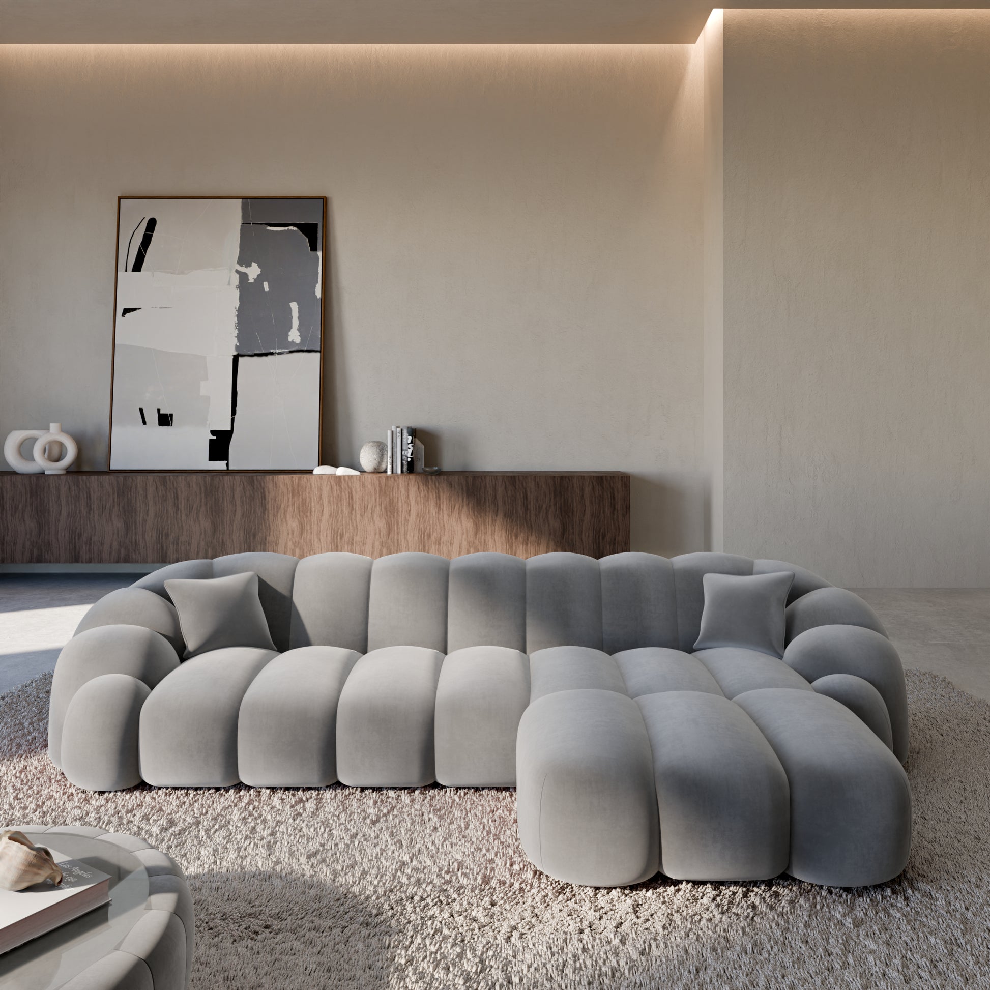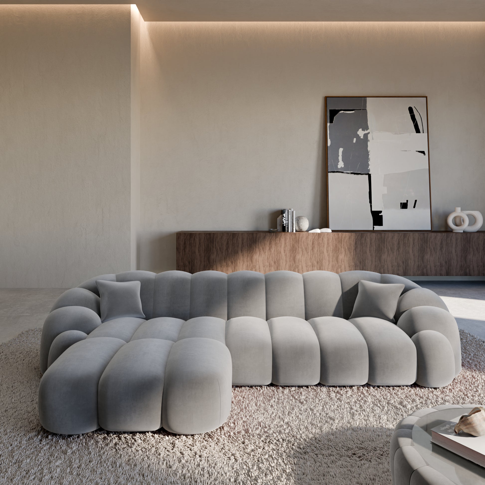 Izquierda / Terciopelo / Estructura gris claro