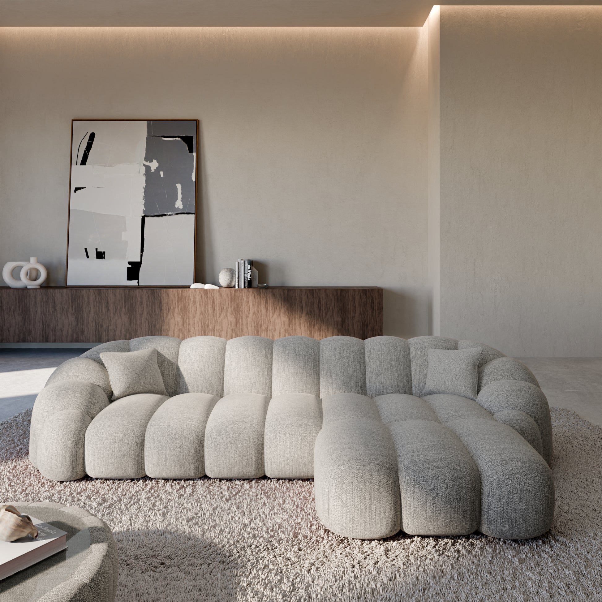 Izquierda / Bouclé / Estructura gris claro