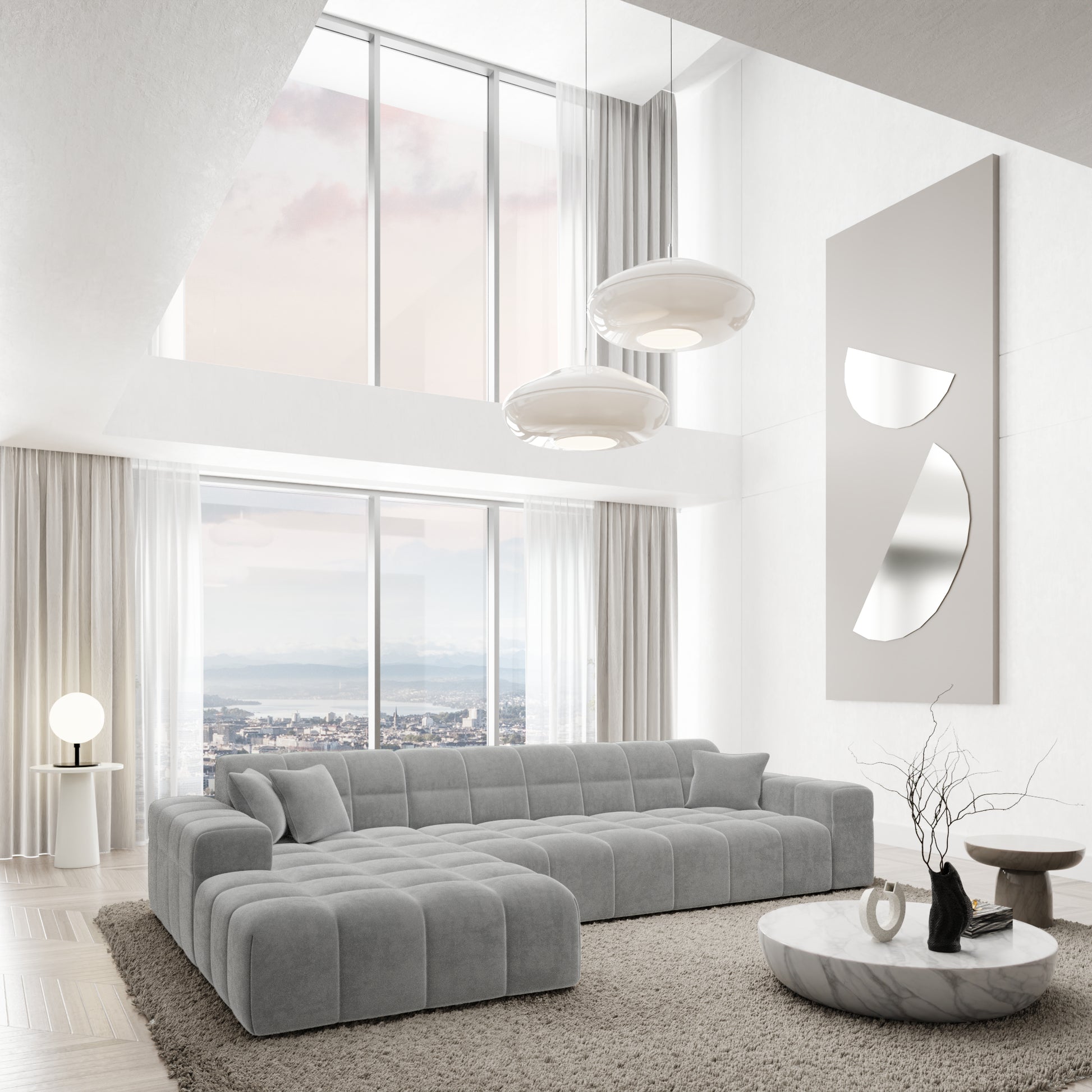 Izquierda / Terciopelo / Terciopelo Gris Claro