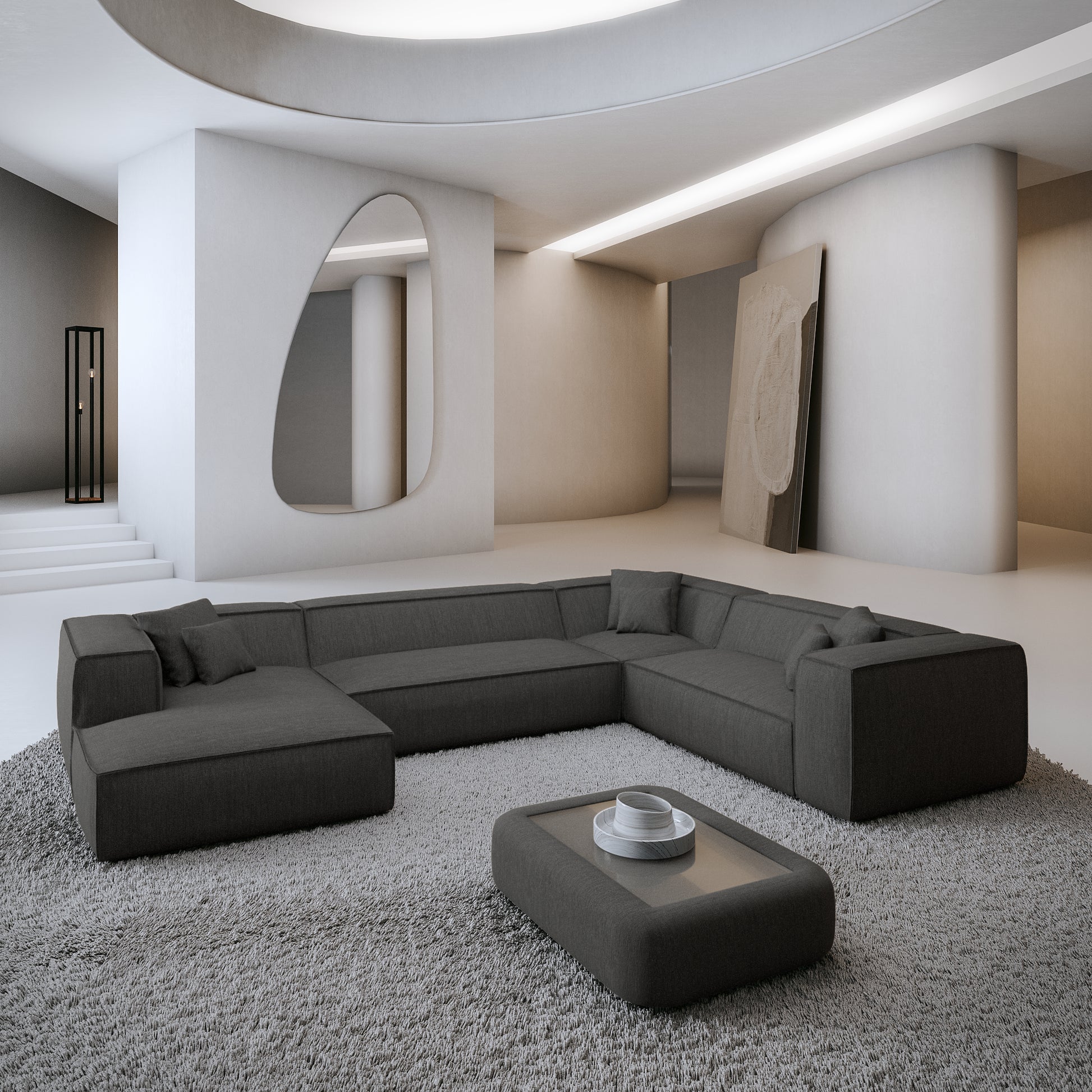 Gauche / Tissu structurel / Velours Gris Foncé