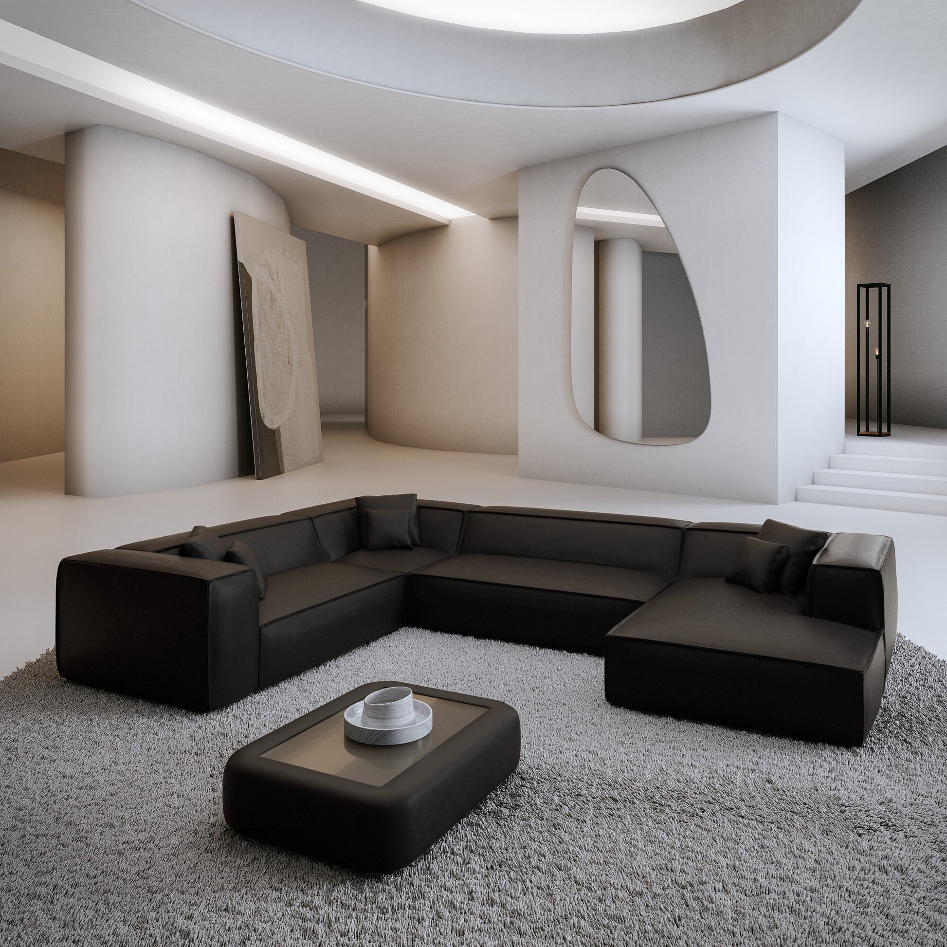 Droite / Velours / Cuir noir