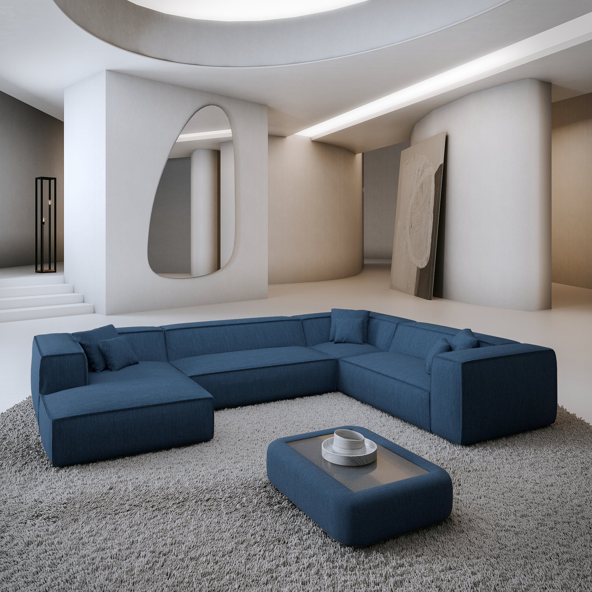 Gauche / Tissu structurel / Velours bleu foncé