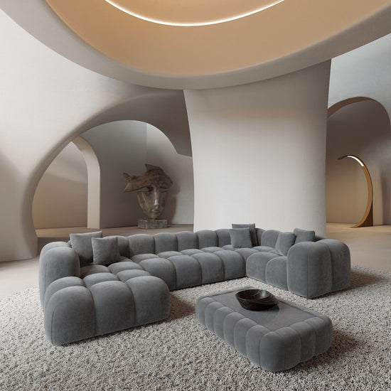 Gauche / Tissu structurel / Velours Gris Foncé